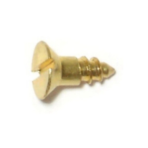 Wood Screw, #6, 3/8 in, Plain Brass Flat Head Slotted Drive, 50 PK