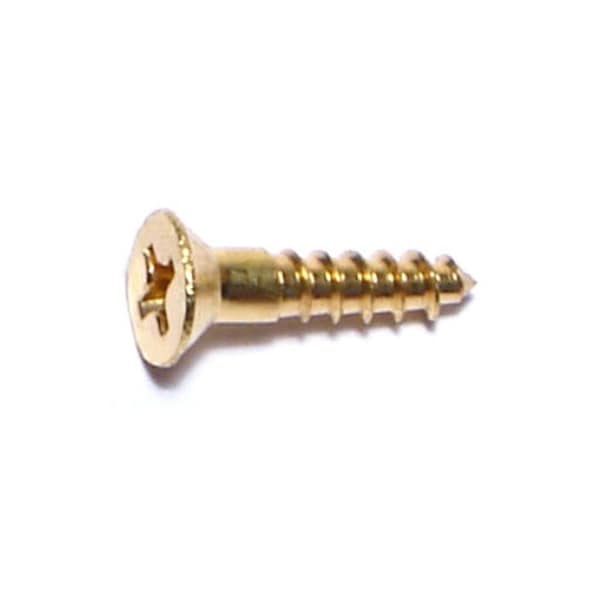 Wood Screw, #6, 5/8 in, Plain Brass Flat Head Phillips Drive, 50 PK