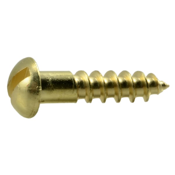 Wood Screw, #6, 5/8 in, Plain Brass Round Head Slotted Drive, 50 PK