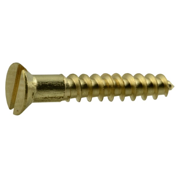 Wood Screw, #6, 7/8 in, Plain Brass Flat Head Slotted Drive, 25 PK