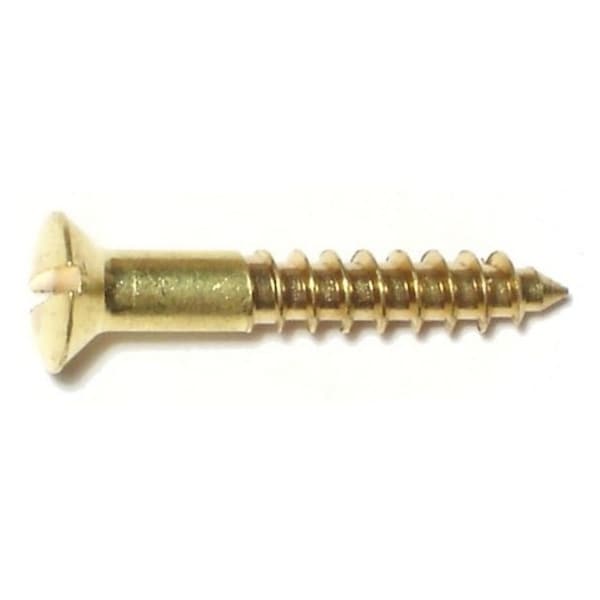 Wood Screw, #6, 7/8 in, Plain Brass Oval Head Slotted Drive, 48 PK
