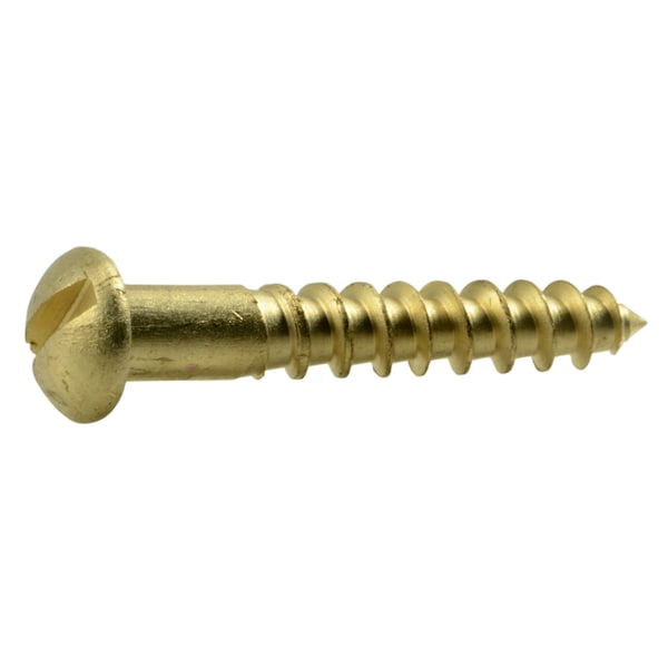 Wood Screw, #6, 7/8 in, Plain Brass Round Head Slotted Drive, 25 PK