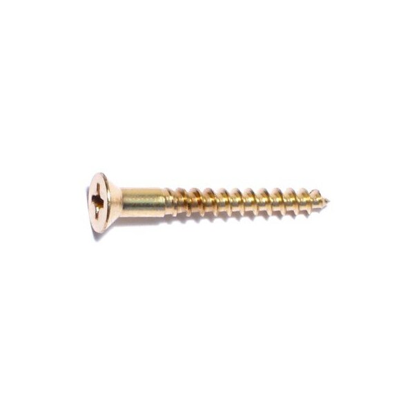 Wood Screw, #7, 1-1/4 in, Plain Brass Flat Head Phillips Drive, 100 PK