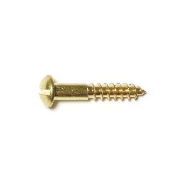 Wood Screw, #8, 1 in, Plain Brass Round Head Slotted Drive, 25 PK