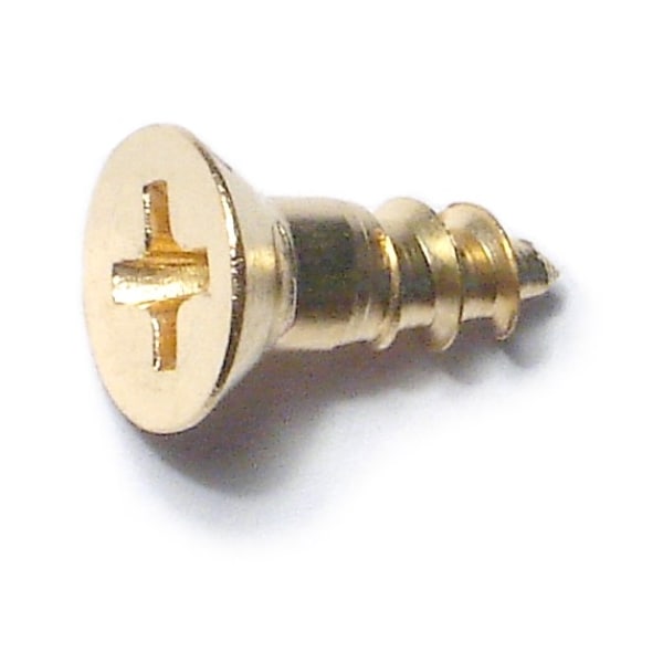 Wood Screw, #8, 1/2 in, Plain Brass Flat Head Phillips Drive, 100 PK