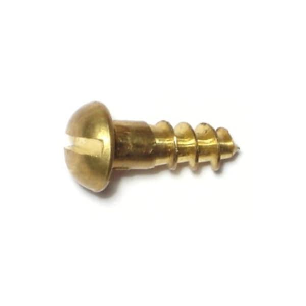 Wood Screw, #8, 1/2 in, Plain Brass Round Head Slotted Drive, 36 PK