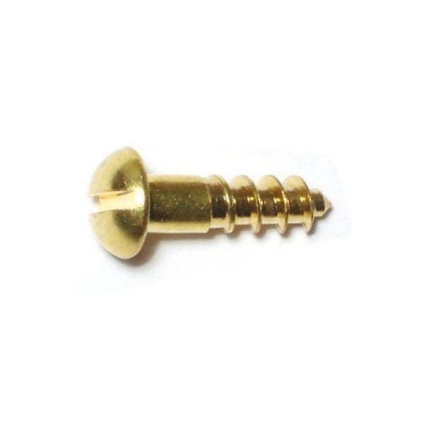 Wood Screw, #8, 5/8 in, Plain Brass Round Head Slotted Drive, 36 PK