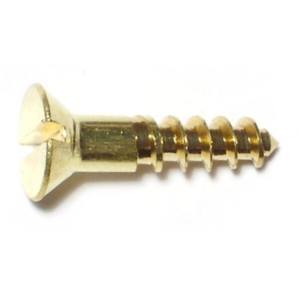 Wood Screw, #8, 7/8 in, Plain Brass Flat Head Slotted Drive, 25 PK