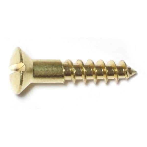 Wood Screw, #8, 7/8 in, Plain Brass Oval Head Slotted Drive, 30 PK