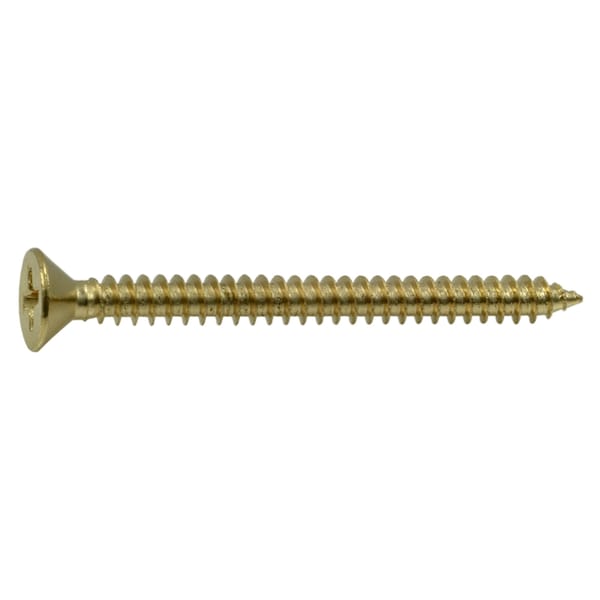 Wood Screw, #9, 2 in, Plain Brass Flat Head Phillips Drive, 12 PK