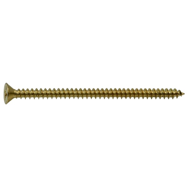 Wood Screw, #9, 3 in, Plain Brass Flat Head Phillips Drive, 8 PK
