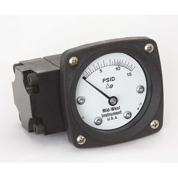 Differential Pressure Gauge, Pressure Scale Type, Pressure Range 0 to 15 PSID, Pressure Range Minor Div 1.0 PSID, Rated Total Pressure 3000 PSIG, Full Scale Accuracy +/-3-2-3 %, Connection Size NPT 1/4 In FNPT In, Dial Size 2-1/2 In In, Aluminum Body Material, Plastic Dial Material, Buna N Diaphragm Material, Buna N Seal Material, Includes Instructions, Warranty Length 5 Year, Ambient Operating Range -40 to 200 F