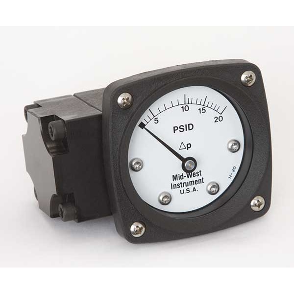 Differential Pressure Gauge, Pressure Scale Type, Pressure Range 0 to 20 PSID, Pressure Range Minor Div 1.0 PSID, Rated Total Pressure 3000 PSIG, Full Scale Accuracy +/-3-2-3 %, Connection Size NPT 1/4 In FNPT In, Dial Size 2-1/2 In In, Aluminum Body Material, Plastic Dial Material, Buna N Diaphragm Material, Buna N Seal Material, Includes Instructions, Warranty Length 5 Year, Ambient Operating Range -40 to 200 F