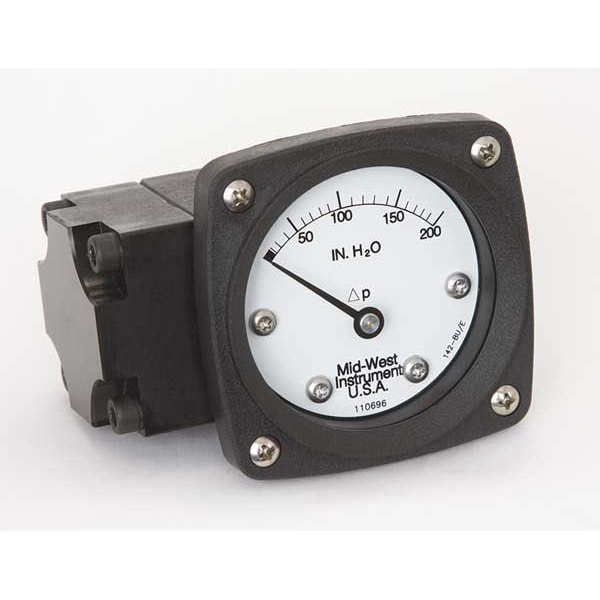 Differential Pressure Gauge, Pressure Scale Type, Pressure Range 0 to 200 In WC, Pressure Range Minor Div 10.0 WC, Rated Total Pressure 3000 PSIG, Full Scale Accuracy +/-3-2-3 %, Connection Size NPT 1/4 In FNPT In, Dial Size 2-1/2 In In, Aluminum Body Material, Plastic Dial Material, Buna N Diaphragm Material, Buna N Seal Material, Includes Instructions, Warranty Length 5 Year, Ambient Operating Range -40 to 200 F