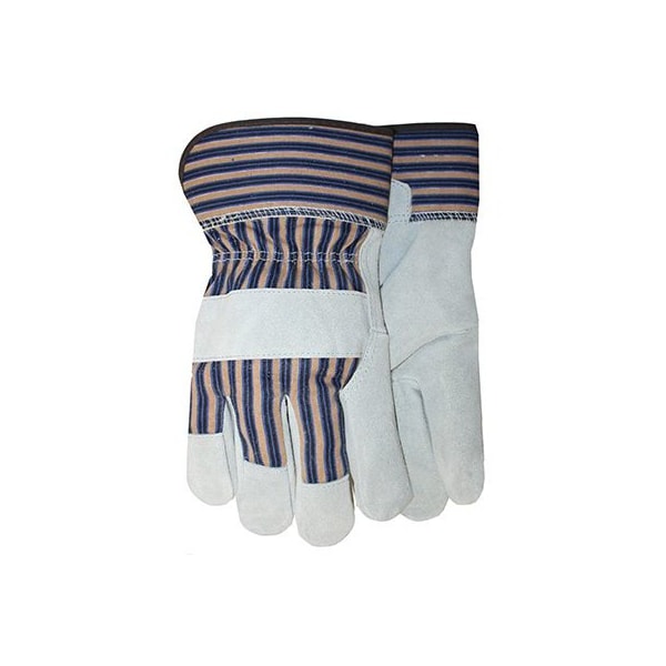 Kids, Striped, Split Cowhide Leather Palm Gloves With Safety Cuff
