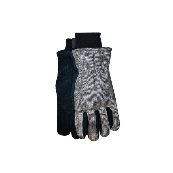 Medium, Ladies, Thinsulate Lined, Leather Palm, Herringbone Plaid Wool Back Glove, With Knit Snow Cuff