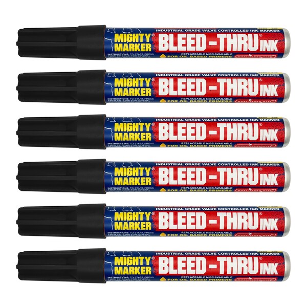 The IM-13, Mighty Marker, Bleed-Thru marker is engineered for marks to Bleed-Thru oil-based primers and topcoats on unpainted surfaces. This industrial marker is valve action activated to keep it from drying out and comes with extra replaceable nibs, so you can use all the ink in the barrel. It features a dual bullet and chisel nib for both precise and broad markings. To cover the marks, seal the surface with a water or alcohol-based sealant.