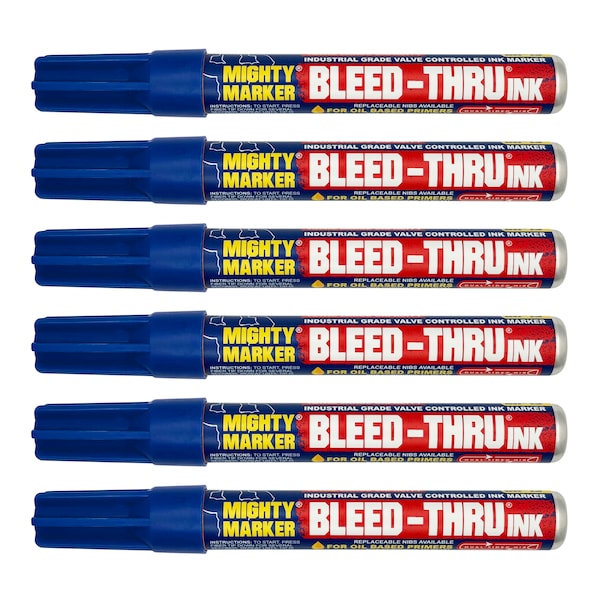 The IM-13, Mighty Marker, Bleed-Thru marker is engineered for marks to Bleed-Thru oil-based primers and topcoats on unpainted surfaces. This industrial marker is valve action activated to keep it from drying out and comes with extra replaceable nibs, so you can use all the ink in the barrel. It features a dual bullet and chisel nib for both precise and broad markings. To cover the marks, seal the surface with a water or alcohol-based sealant.