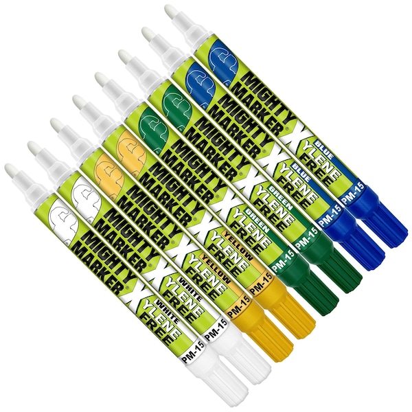 The PM-15 Mighty X Marker is your go-to solution for industrial-strength marking with a safer, eco-friendly formula. Filled with 10ml of alcohol-based, xylene-free, and HAPS-free paint, this marker delivers bold, permanent, and waterproof lines on bare metals, glass, rubber, wood, plastic, and even dirty, oily, or rusty surfaces. Its 2.3mm medium bullet tip provides precision and control, making it ideal for professionals in construction, fabrication, automotive, and other industrial applications. Quick-drying to prevent smudging and engineered to resist fading, abrasion, and extreme weather, it performs reliably indoors and outdoors. It's valve-action mechanism ensures the marker won’t dry out, even if the cap is left off. Each pack includes 8 bonus reversible tips to make sure all the paint is used. Made for those who demand performance without compromise, the PM-15 Mighty X Marker offers a high-quality alternative that’s safer for both you and the environment.