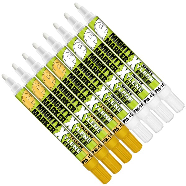 The PM-15 Mighty X Marker is your go-to solution for industrial-strength marking with a safer, eco-friendly formula. Filled with 10ml of alcohol-based, xylene-free, and HAPS-free paint, this marker delivers bold, permanent, and waterproof lines on bare metals, glass, rubber, wood, plastic, and even dirty, oily, or rusty surfaces. Its 2.3mm medium bullet tip provides precision and control, making it ideal for professionals in construction, fabrication, automotive, and other industrial applications. Quick-drying to prevent smudging and engineered to resist fading, abrasion, and extreme weather, it performs reliably indoors and outdoors. It's valve-action mechanism ensures the marker won’t dry out, even if the cap is left off. Each pack includes 8 bonus reversible tips to make sure all the paint is used. Made for those who demand performance without compromise, the PM-15 Mighty X Marker offers a high-quality alternative that’s safer for both you and the environment.