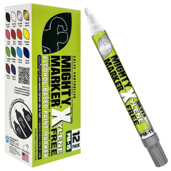 The PM-15 Mighty X Marker is your go-to solution for industrial-strength marking with a safer, eco-friendly formula. Filled with 10ml of alcohol-based, xylene-free, and HAPS-free paint, this marker delivers bold, permanent, and waterproof lines on bare metals, glass, rubber, wood, plastic, and even dirty, oily, or rusty surfaces. Its 2.3mm medium bullet tip provides precision and control, making it ideal for professionals in construction, fabrication, automotive, and other industrial applications. Quick-drying to prevent smudging and engineered to resist fading, abrasion, and extreme weather, it performs reliably indoors and outdoors. It's valve-action mechanism ensures the marker won’t dry out, even if the cap is left off. Each box contains 12 markers. Made for those who demand performance without compromise, the PM-15 Mighty X Marker offers a high-quality alternative that’s safer for both you and the environment.
