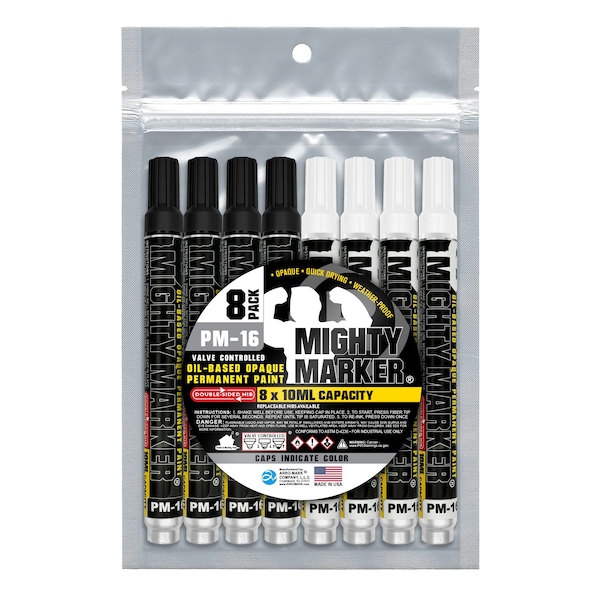 The PM-16 Mighty Marker is built for tough jobs, indoors and out. Filled with 10ml of liquid, oil-based paint, it creates permanent marks on metal, oily surfaces, rubber, plastic, wood, masonry, glass, and all non-porous surfaces. Quick-drying in 30 seconds, it leaves durable, waterproof marks that resist fading, abrasion, chemicals, and UV light, lasting for 10+ years. The valve-action mechanism ensures the marker does not dry out, allowing the use of every drop of the 10ml of paint. Its your go-to marker for lasting results in any condition.