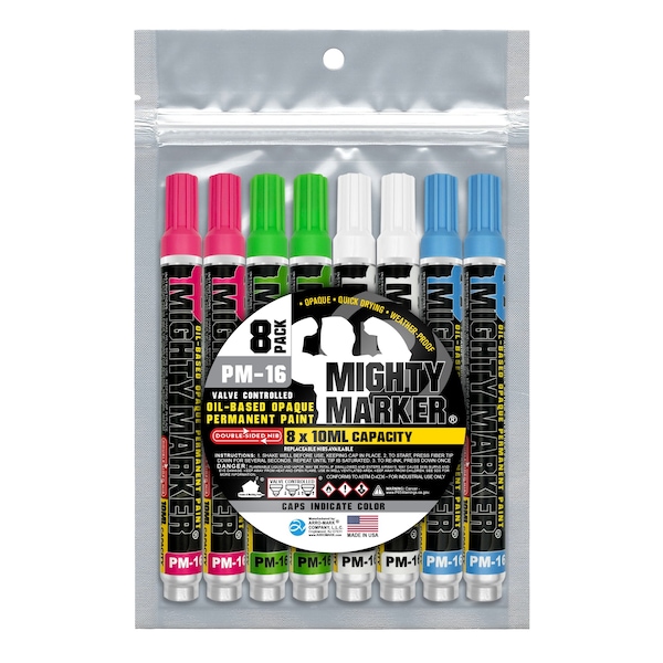 The PM-16 Mighty Marker is built for tough jobs, indoors and out. Filled with 10ml of liquid, oil-based paint, it creates permanent marks on metal, oily surfaces, rubber, plastic, wood, masonry, glass, and all non-porous surfaces. Quick-drying in 30 seconds, it leaves durable, waterproof marks that resist fading, abrasion, chemicals, and UV light, lasting for 10+ years. The valve-action mechanism ensures the marker does not dry out, allowing the use of every drop of the 10ml of paint. Its your go-to marker for lasting results in any condition.