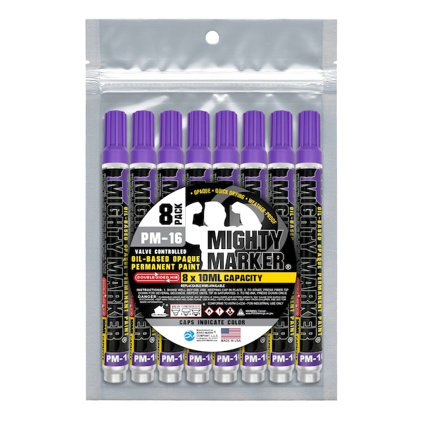 The PM-16 Mighty Marker is built for tough jobs, indoors and out. Filled with 10ml of liquid, oil-based paint, it creates permanent marks on metal, oily surfaces, rubber, plastic, wood, masonry, glass, and all non-porous surfaces. Quick-drying in 30 seconds, it leaves durable, waterproof marks that resist fading, abrasion, chemicals, and UV light, lasting for 10+ years. The valve-action mechanism ensures the marker does not dry out, allowing the use of every drop of the 10ml of paint. Its your go-to marker for lasting results in any condition.