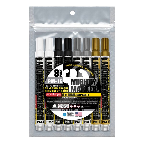 The PM-16 Mighty Marker is built for tough jobs, indoors and out. Filled with 10ml of liquid, oil-based paint, it creates permanent marks on metal, oily surfaces, rubber, plastic, wood, masonry, glass, and all non-porous surfaces. Quick-drying in 30 seconds, it leaves durable, waterproof marks that resist fading, abrasion, chemicals, and UV light, lasting for 10+ years. The valve-action mechanism ensures the marker does not dry out, allowing the use of every drop of the 10ml of paint. Its your go-to marker for lasting results in any condition.