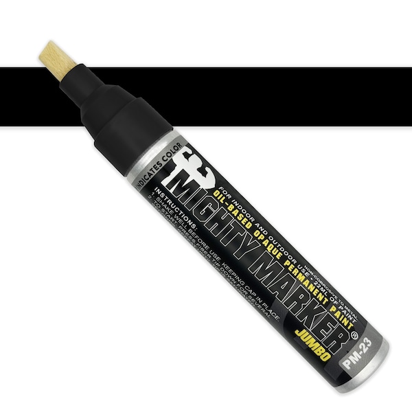 The PM-23 Mighty Marker Jumbo is built for heavy-duty jobs with a large chisel tip that delivers bold, highly visible marks. Filled with 22ml of oil-based paint, it creates permanent marks on metal, oily surfaces, rubber, plastic, wood, masonry, glass, and all non-porous surfaces. Quick-drying in 30 seconds, it leaves durable, waterproof marks that resist fading, abrasion, chemicals, and UV light, lasting for 10+ years. The valve-action mechanism ensures the marker does not dry out, allowing the use of every drop of the 22ml of paint. Ideal for marking large surfaces or creating thicker, clearer lines in harsh environments.