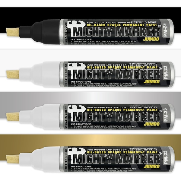 PM-23 Jumbo Chisel Tip, Black, White, Silver, Gold, 4PK