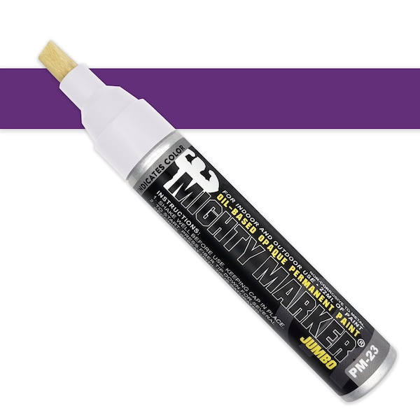 The PM-23 Mighty Marker Jumbo is built for heavy-duty jobs with a large chisel tip that delivers bold, highly visible marks. Filled with 22ml of oil-based paint, it creates permanent marks on metal, oily surfaces, rubber, plastic, wood, masonry, glass, and all non-porous surfaces. Quick-drying in 30 seconds, it leaves durable, waterproof marks that resist fading, abrasion, chemicals, and UV light, lasting for 10+ years. The valve-action mechanism ensures the marker does not dry out, allowing the use of every drop of the 22ml of paint. Ideal for marking large surfaces or creating thicker, clearer lines in harsh environments.