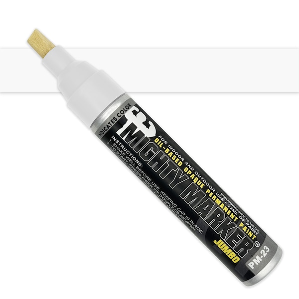 The PM-23 Mighty Marker Jumbo is built for heavy-duty jobs with a large chisel tip that delivers bold, highly visible marks. Filled with 22ml of oil-based paint, it creates permanent marks on metal, oily surfaces, rubber, plastic, wood, masonry, glass, and all non-porous surfaces. Quick-drying in 30 seconds, it leaves durable, waterproof marks that resist fading, abrasion, chemicals, and UV light, lasting for 10+ years. The valve-action mechanism ensures the marker does not dry out, allowing the use of every drop of the 22ml of paint. Ideal for marking large surfaces or creating thicker, clearer lines in harsh environments.