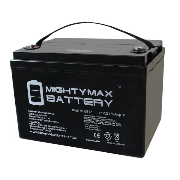 Delivering power when you need it, the Mighty Max ML125-12 12 Volt 125 AH uses a state of the art, heavy-duty, calcium-alloy grid that provides exceptional performance and service life in both float and cyclic applications. The ML125-12 is an Absorbent Glass Mat (AGM) technology with a valve regulated design, that can be used in enclosed and indoor environments without leaking or maintenance, providing a superior performance for thousands of models. SLA / AGM spill proof battery has a characteristic of high discharge rate, wide operating temperatures, long service life and deep discharge recover. Rechargeable battery that can be mounted in any position, resists shocks and vibration. Long lasting high performance in high and low temperatures. Mighty Max SLA batteries are utilized in a wide variety of applications including; Consumer Electronics, Electric Vehicles, Engine Starters, Golf Carts, Hunting, Lawn and Garden Tools, Medical Mobility, Motorcycles, Power sports, Portable Tools, Solar, Toys and Hobby, Access Control Devices, Emergency Lighting, Security and more. Internal Thread Terminal, Charger is not included.