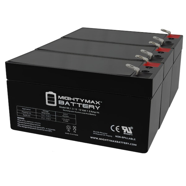 12V 1.3Ah Battery Replacement for Double Tech DB12-1.3 - 3 Pack