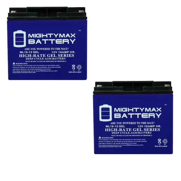 12V 18AH GEL Replacement Battery for Powerware BAT-1500 - 2PK