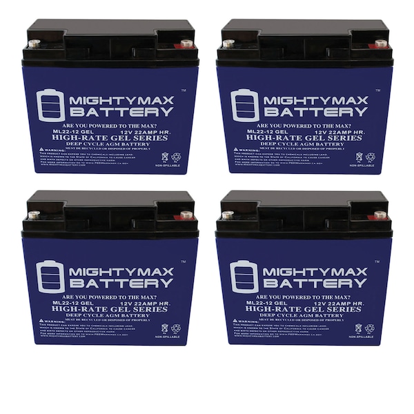 12V 22AH GEL Battery Replacement for Cruzin Cooler Scooter - 4 Pack