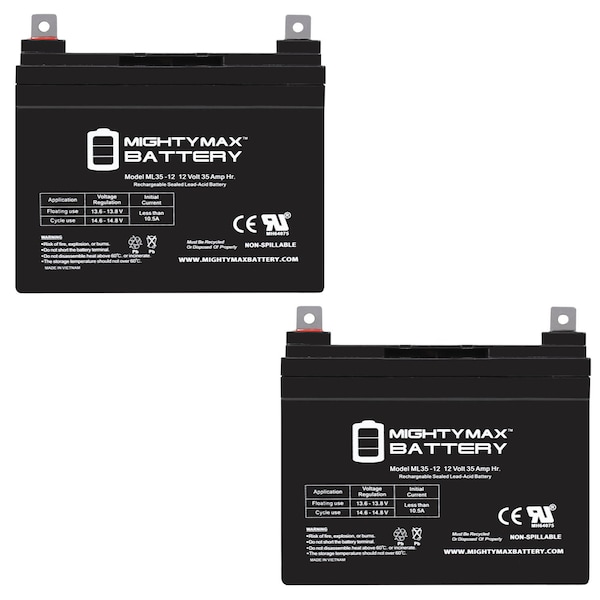 12V 35AH SLA Replacement Battery for EJ Quest - 2PK