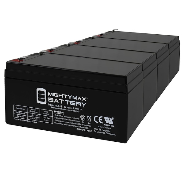 12V 3AH SLA Replacement Battery for B&B BP3-12 - 4PK