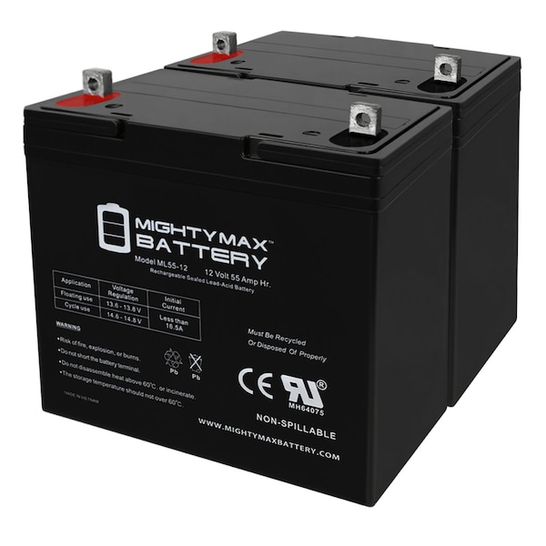 12V 55Ah SLA Replacement Battery for VMAX MB96-60 - 2PK