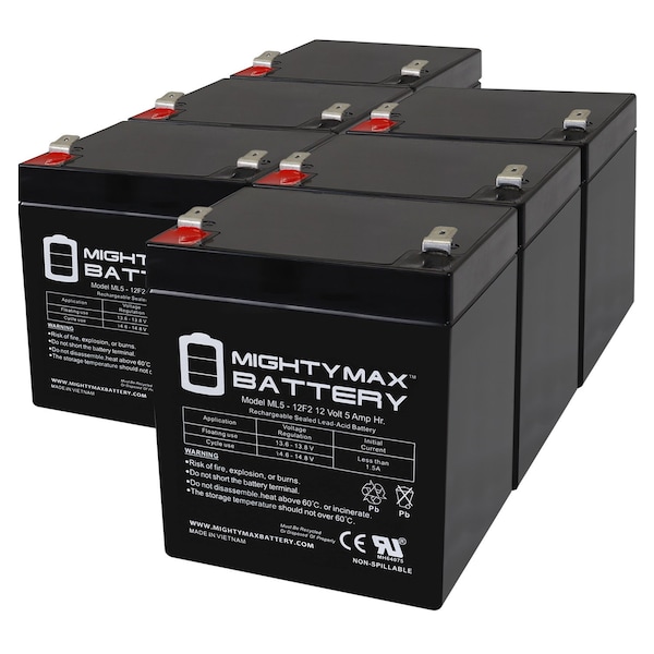 12V 5Ah F2 SLA Replacement Battery for BB SHR7-12 - 6PK
