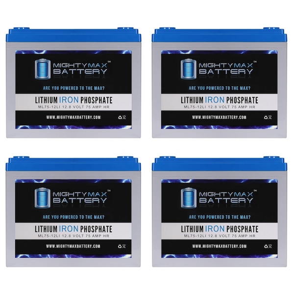 Invest in power with the Mighty Max 12V 75ah Lithium Iron Phosphate Battery. The ML75-12LI will take your deep cycle battery experience to a whole new horizon. Manufactured with the highest quality components and the customers safety in mind, this battery contains a battery management system BMS. BMS provides all kinds of protection for the battery and customer, equipped with Over charge and short circuit protection. Weighing only 23.00 lbs. and being a direct drop in replacement for its sister sealed lead acid and Gel batteries which weigh a hefty 50 lbs. Lighter, stronger and longer life span with 2500 cycles makes this the ideal battery for all your Deep Cycle applications such as, Solar / wind energy systems, Off Grid systems, RV, Camping, Backup power systems and much more. Attention - Designed to be used in parallel or in series with a maximum of 4 identical batteries. Make sure to only use a compatible lithium charger for this battery and tightly screw the terminals. Having loose terminals will cause a buildup of heat resulting in damage to the battery.