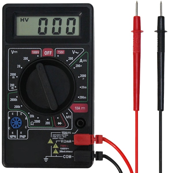 Mighty Max Multimeter Battery Tester is small, compact, lightweight and designed to measure AC and DC voltages in the most convenient way. With MightyMax digital multimeter voltage tester features full range of functions and is small and lightweight enough to be used on the go. Voltmeter is designed to measure wide range of tests for voltage, current, resistance, transistor hFE, continuity, diodes, DC voltage, DC current, AC voltage and temperature while the circuit is fused and protected. With a low battery indicator, you will know that its time to replace the 9 volt battery. The test leads are 18 inch long with just enough length to set the digital multimeter in a safe location. Our digital multimeter comes with multiple usage options such as checking small appliances, wall receptacles, fuses, control panels, battery voltage and much more.