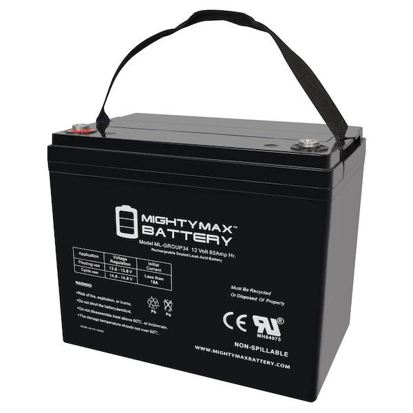 Delivering power when you need it, the Mighty Max ML60-12 12 Volt 60 AH Maintenance Free battery. Requires no addition of water during the life of the battery. The Mighty Max ML60-12 is a TRUE DEEP CYCLE battery that can be mounted in any position, requires no maintenance. When a SLA battery is charged, no hazardous fumes escape the battery case, gases are processed within the battery itself. Mighty Max SLA batteries are utilized in a wide variety of applications including; Consumer Electronics, Electric Vehicles, Engine Starters, Golf Carts, Hunting, Lawn and Garden Tools, Medical Mobility, Motorcycles, Power sports, Portable Tools, Solar, Toys and Hobby, Access Control Devices, Emergency Lighting, Security and more.