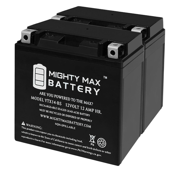 YTX14-BS Replacement Battery Compatible with UPlus YTX14-BS - 2PK