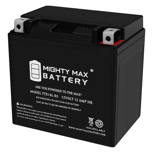 - • YTX14L-BS is a 12V 12AH 200 Cold Cranking Amps (CCA) Sealed Lead Acid (SLA) Battery