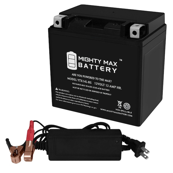 YTX14L-BS Replacement Battery for Centennial CTX14LBS With 12V 2Amp Chgr