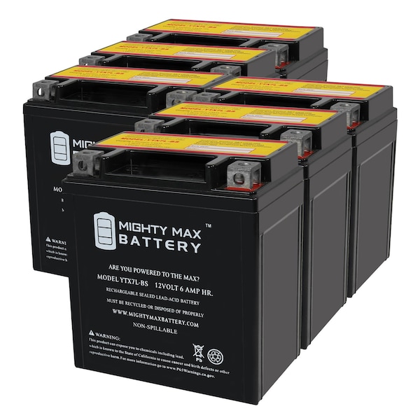 YTX7L-BS 12V 6AH Replacement Battery Compatible with Power Source FTX7L-BS - 6PK