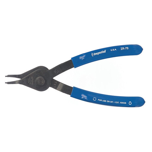 Retaining Ring Plier, Plier Type Retaining Ring Pliers, For Ring Type Internal, Non-Sparking No, Overall Length 7 1/4 in, For Minimum Bore Diameter 1 5/8 in, For Maximum Bore Diameter 2 in, Tip Diameter 0.07 in, Tip Angle 0 Degrees , Jaw Opening Type Manual, Replaceable Tips No, For Use With Retaining Rings, Handle Color Blue, Handle Style Cushion Grip