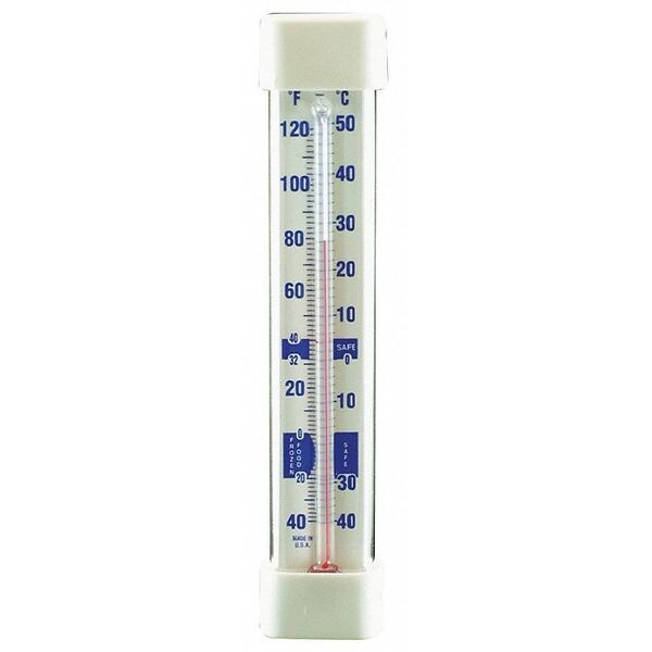 Liquid Filled Food Service Thermometer, Metal Detectable Yes, Case Material Polycarbonate, Lens Material Polycarbonate, Accuracy +/-2 Degrees F, Application Refrigerator/Freezer